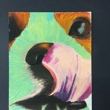 As a Junior in high school I was awarded the Juror's Choice Award for the piece shown above. This is a color pencil portrait drawing of my dog, Henry, done on grey paper. As a senior in high school I submitted an AP portfolio of drawings and paintings with a concentration in dogs.